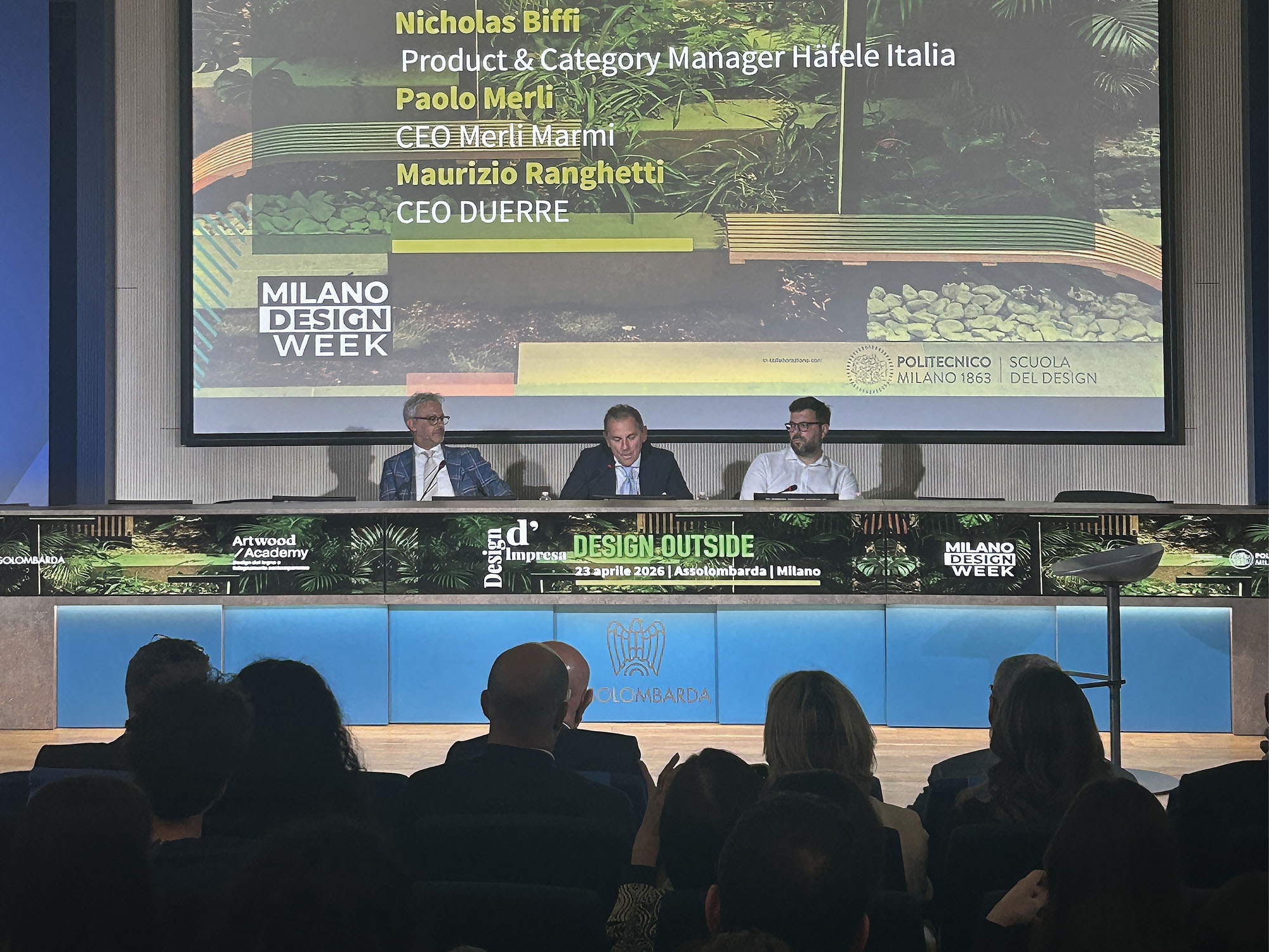 Sono intervenuti, insieme alle ragazze e ai ragazzi coinvolti, Luciano Caspani, Presidente del Gruppo Design e Arredo di Assolombarda; Debora Massari, Assessore al Turismo, Marketing Territoriale e Moda di Regione Lombardia; Luigi Mettica, Direttore Generale di Artwood Academy; Mariano Chernicoff, Docente della Scuola del Design del Politecnico di Milano; Nicholas Biffi, Product & Category Manager Häfele Italia; Paolo Merli, CEO Merli Marmi e Maurizio Ranghetti, CEO DUERRE.