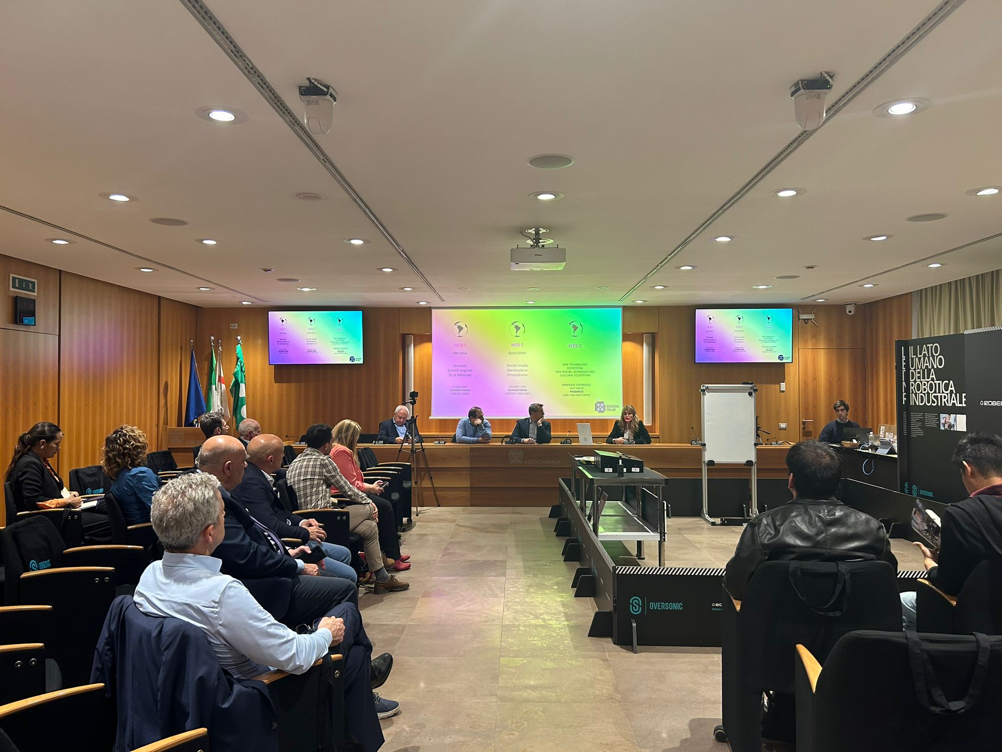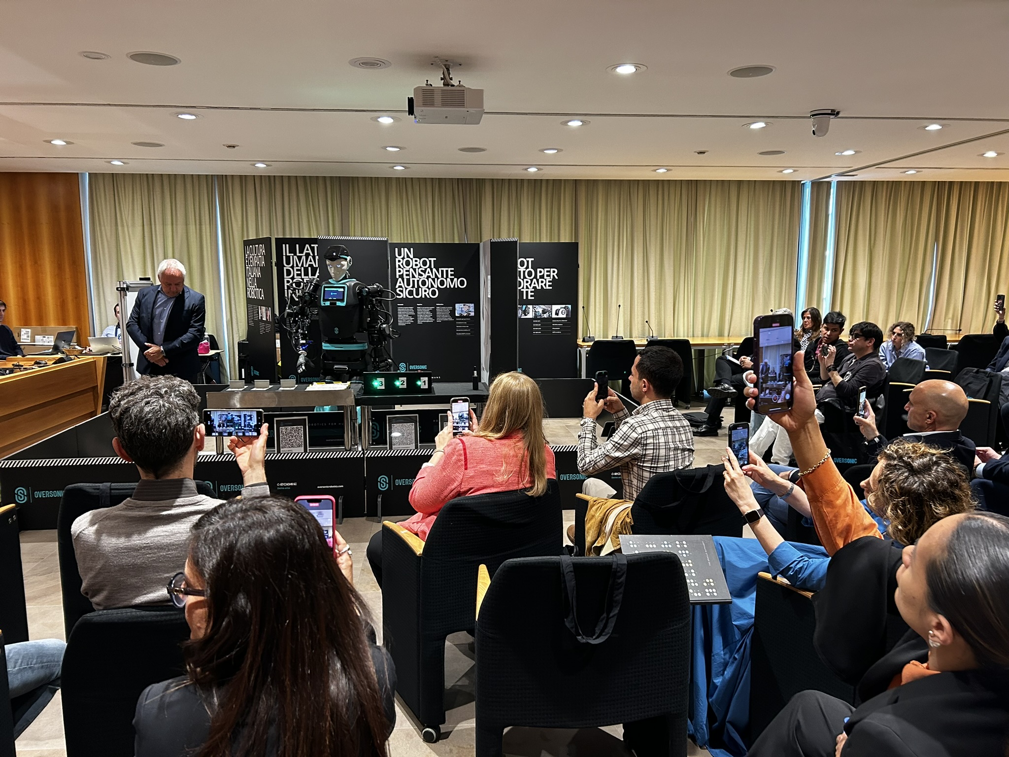Infine Paolo Denti – Founder & CEO di Oversonic, attraverso la presenza di RoBee, il primo robot umanoide cognitivo certificato e Made in Italy, ci ha illustrato come i sistemi tecnologici sono in grado di sfruttare le potenzialità dell’intelligenza artificiale cognitiva e di supportare le persone in quei lavori, usuranti e pericolosi per la salute fisica e psicologica, che non meritiamo più di fare, creando un modello sostenibile e inclusivo di integrazione della tecnologia nella quotidianità.
