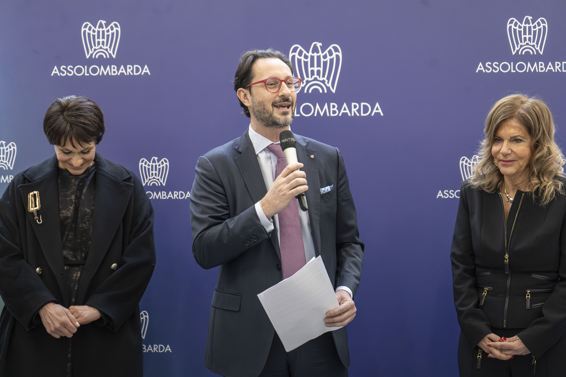 Alvise Biffi, Presidente Assolombarda; Alessandro Picardi; Vicepresidente Assolombarda; Elena Buscemi, Presidente del Consiglio Comunale; Barbara Cimmino, Vicepresidente per l’Export e l’Attrazione degli Investimenti Confindustria; Emma Marcegaglia, Presidente e CEO Marcegaglia Holding S.p.A.; Gian Domenico Auricchio, Presidente CCIAA Cremona-Mantova-Pavia; Erica Corti, Vicepresidente del Consiglio Direttivo Milano & Partners.