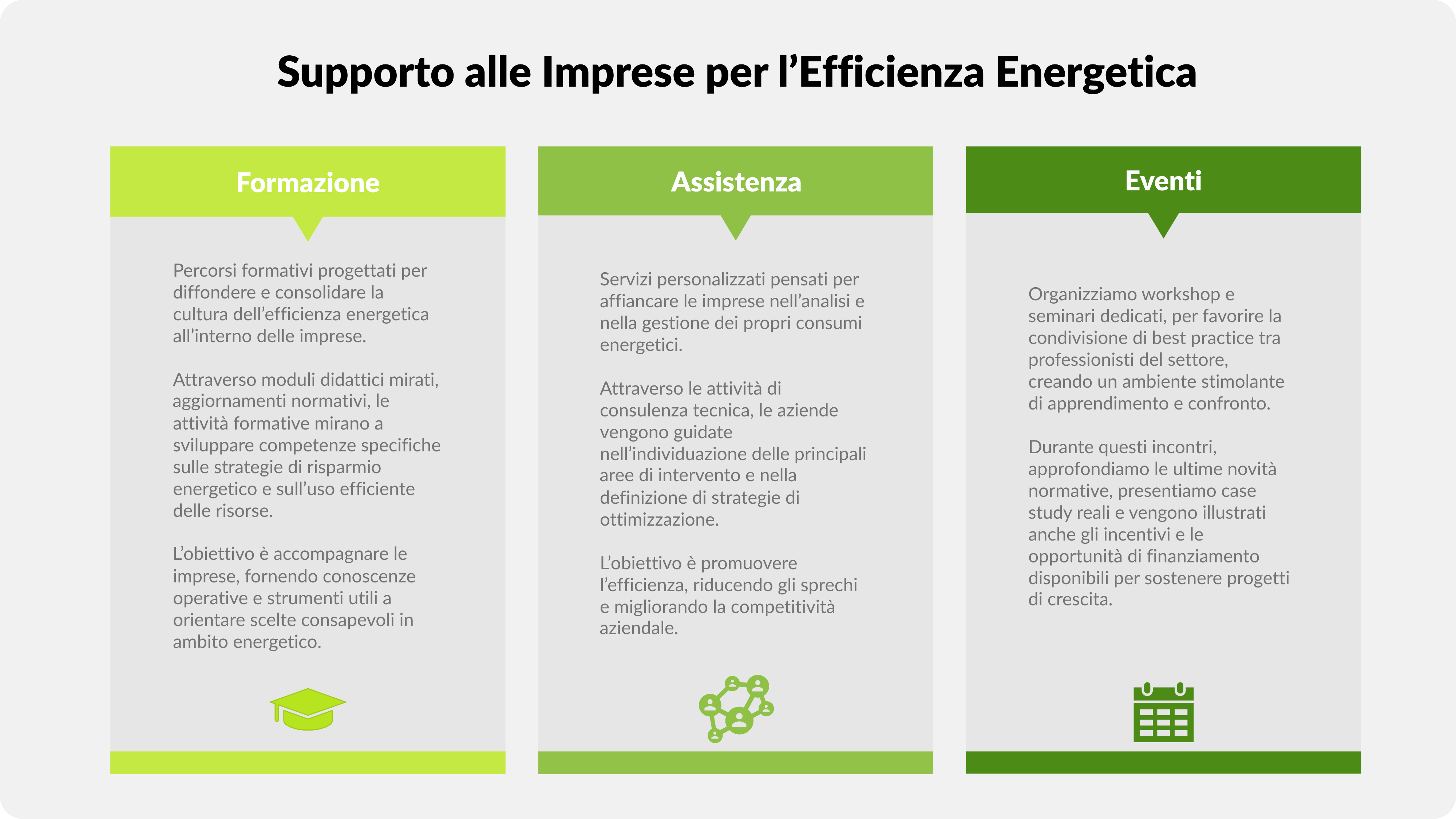 Questa collaborazione si inserisce nel piano di formazione e sensibilizzazione previsto dall’art. 8, comma 10-ter, del D.Lgs. 102/2014, e si traduce in una serie di iniziative congiunte dedicate alle PMI.